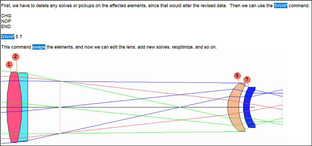 1. A new command, SWAP, will swap two lens elements, replacing each with the other.