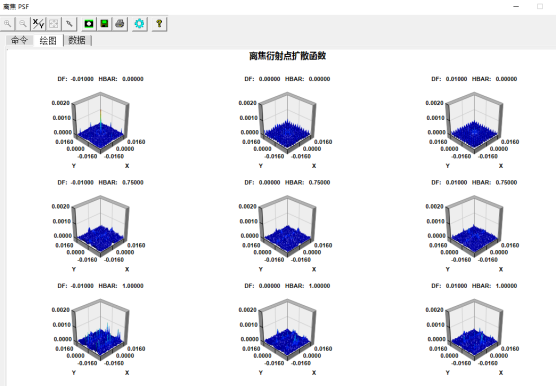2. 在像质分析的 PSF 菜单中离焦 PSF 和全视场 PSF 使用了新的显示图形界面。